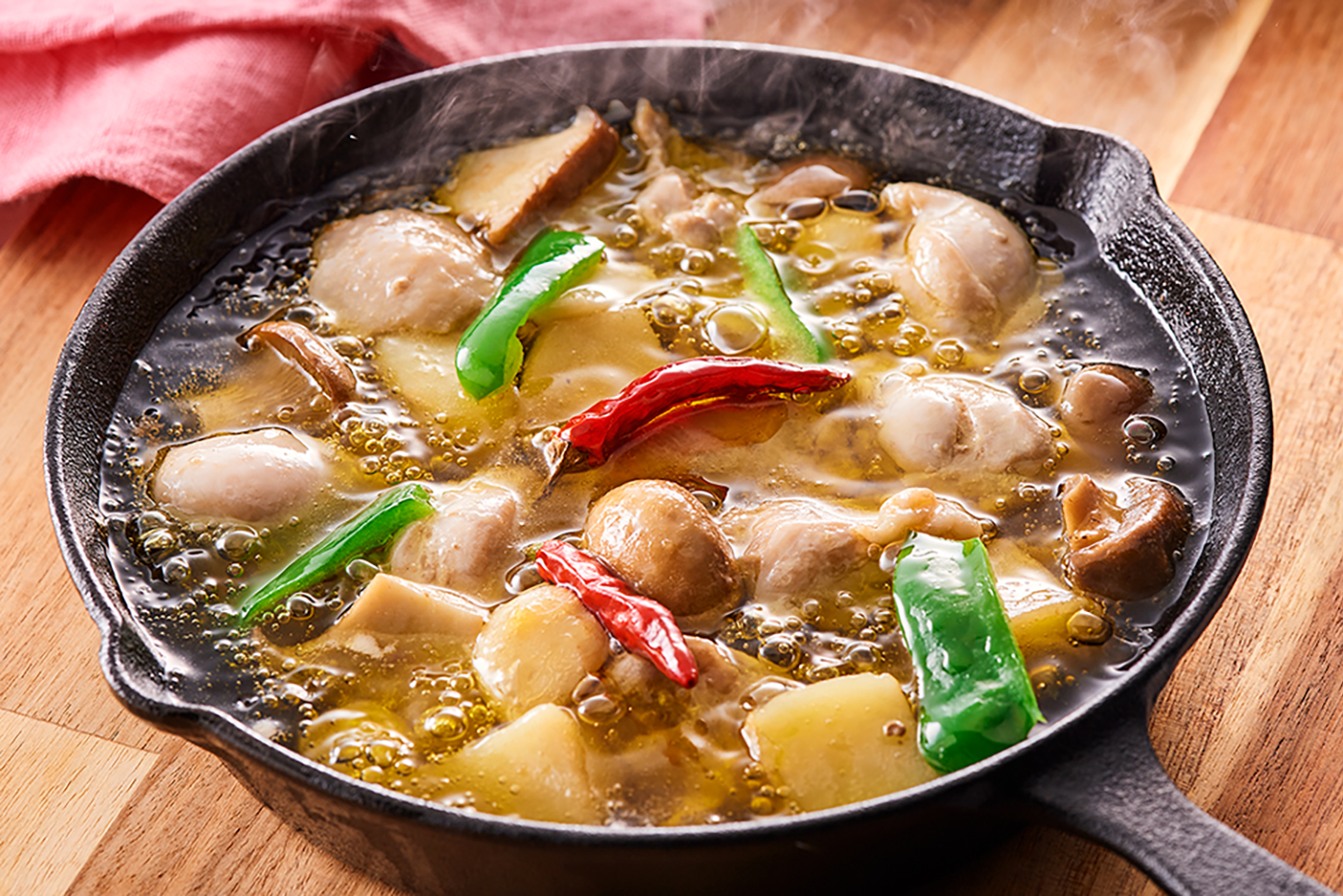 鶏もも肉ときのこのアヒージョ