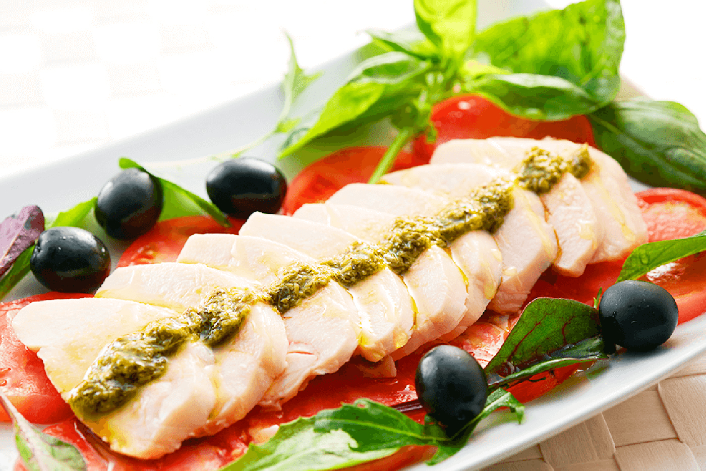 熟成鶏ハムのバジルソースかけ