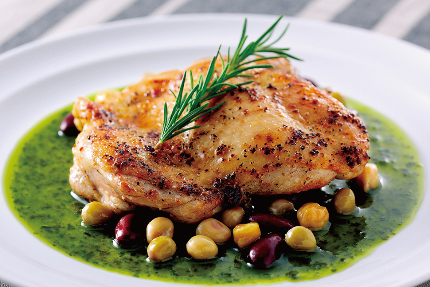 もも肉のソテー バジルソース添え
