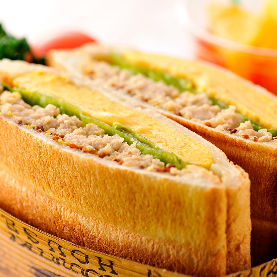 厚焼き玉子と鶏そぼろのホットサンド