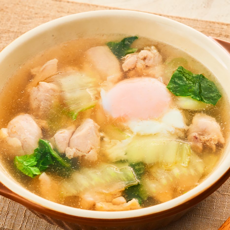 鶏もも肉と落とし卵のあったかスープ