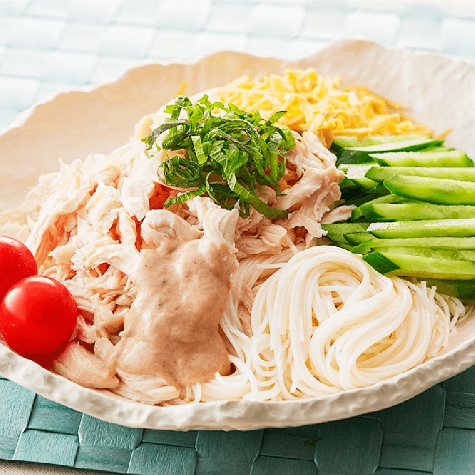 棒棒鶏そうめん梅肉ソースかけ